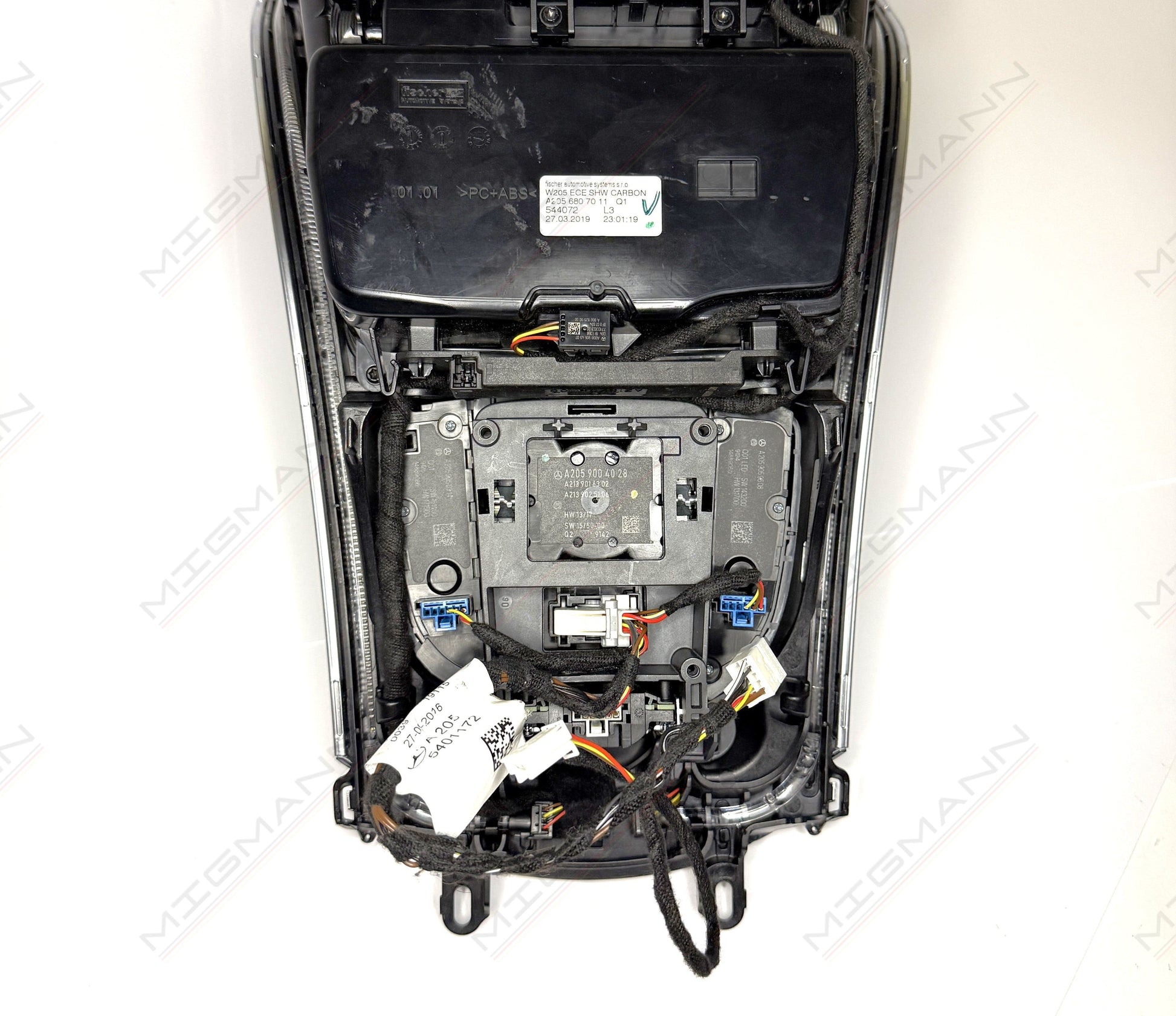 Mercedes-Benz carbon fiber center console set, designed specifically for the W205 C-Class (2014–2021). Produced with true Mercedes factory carbon fiber, this console offers a premium motorsport-inspired look while maintaining perfect OEM fit and finish.