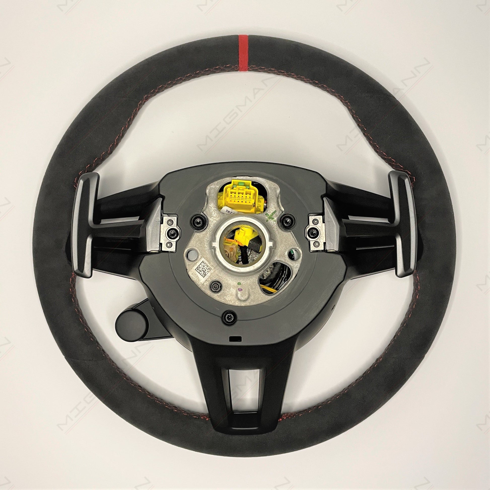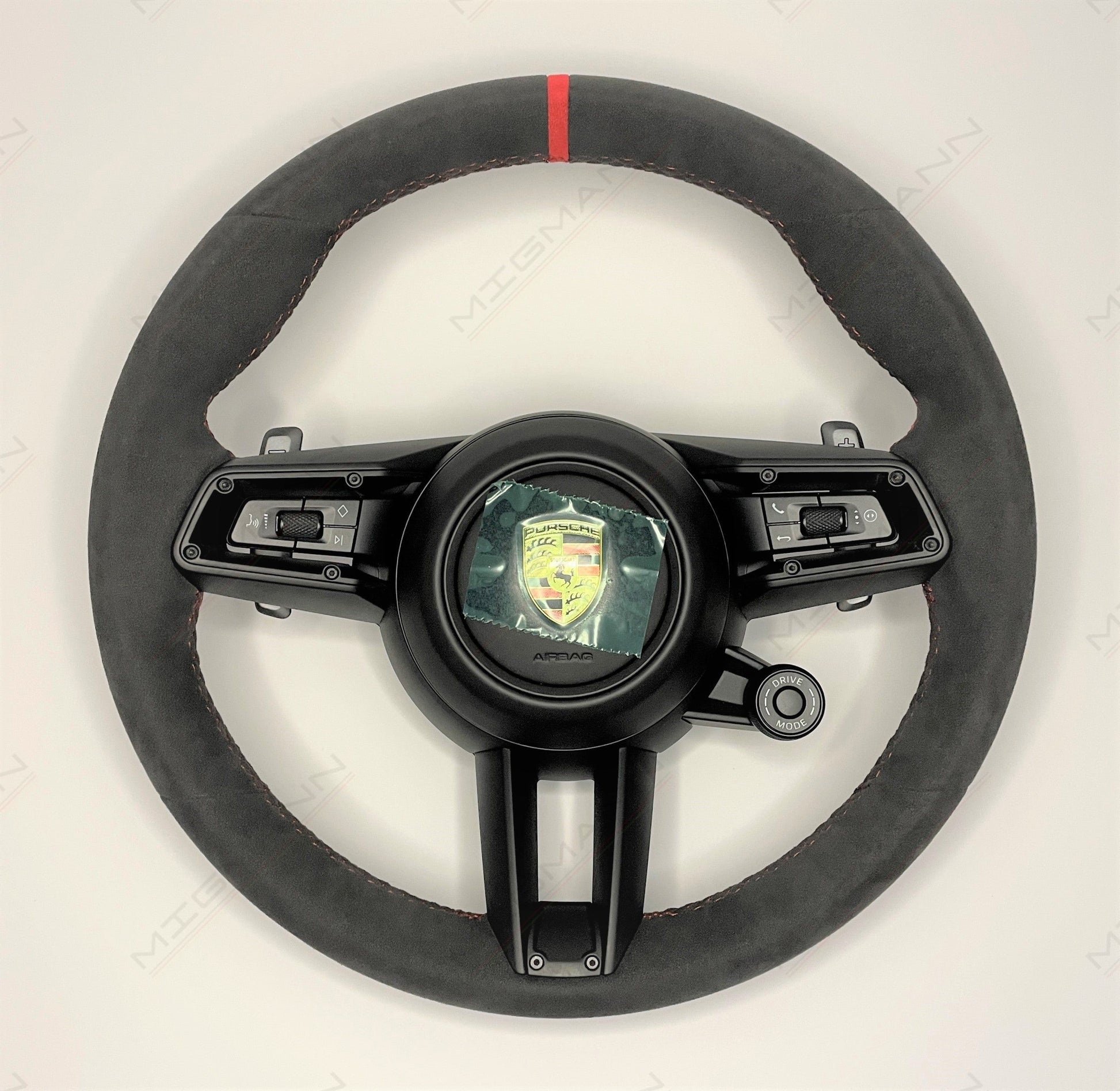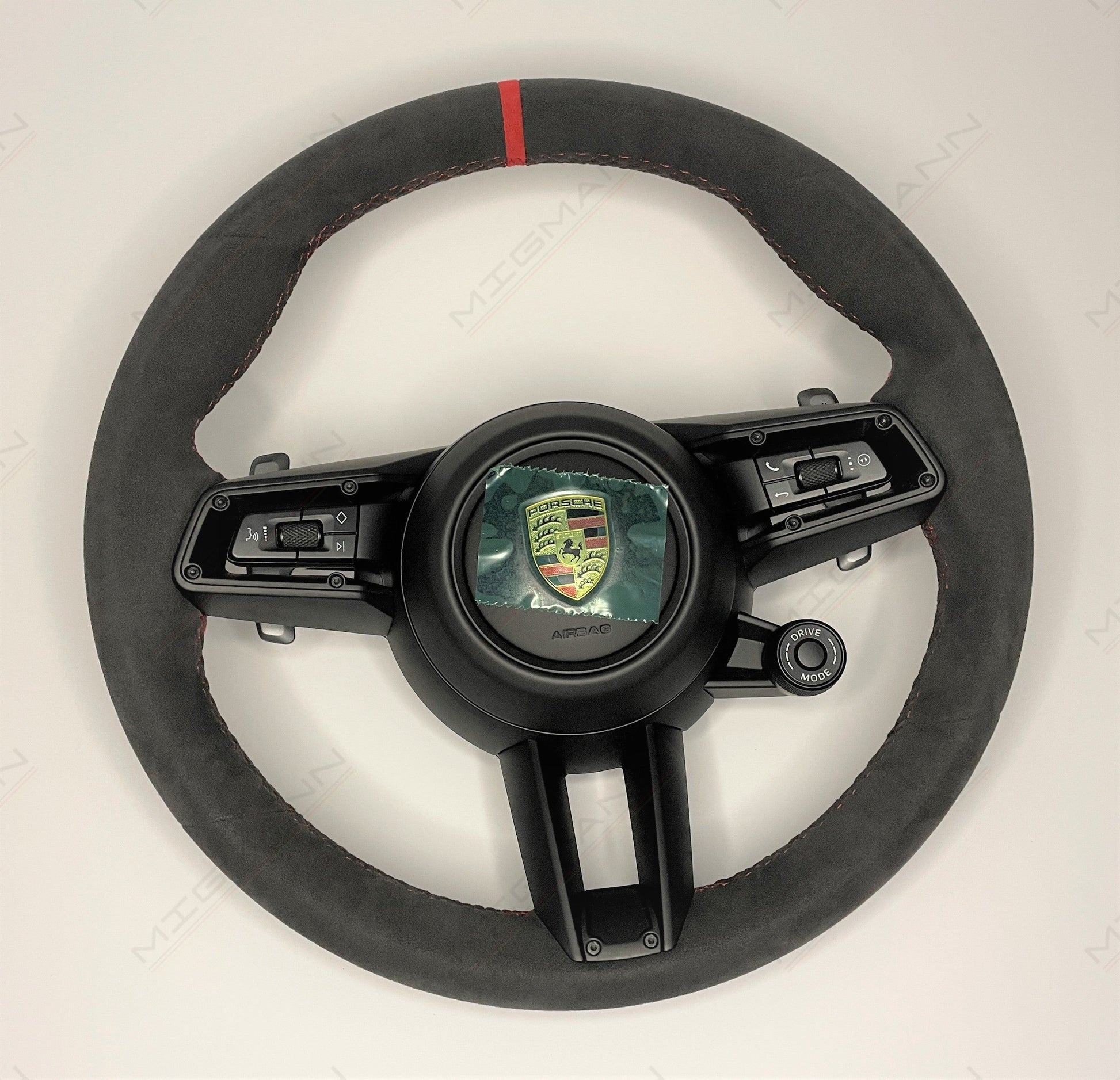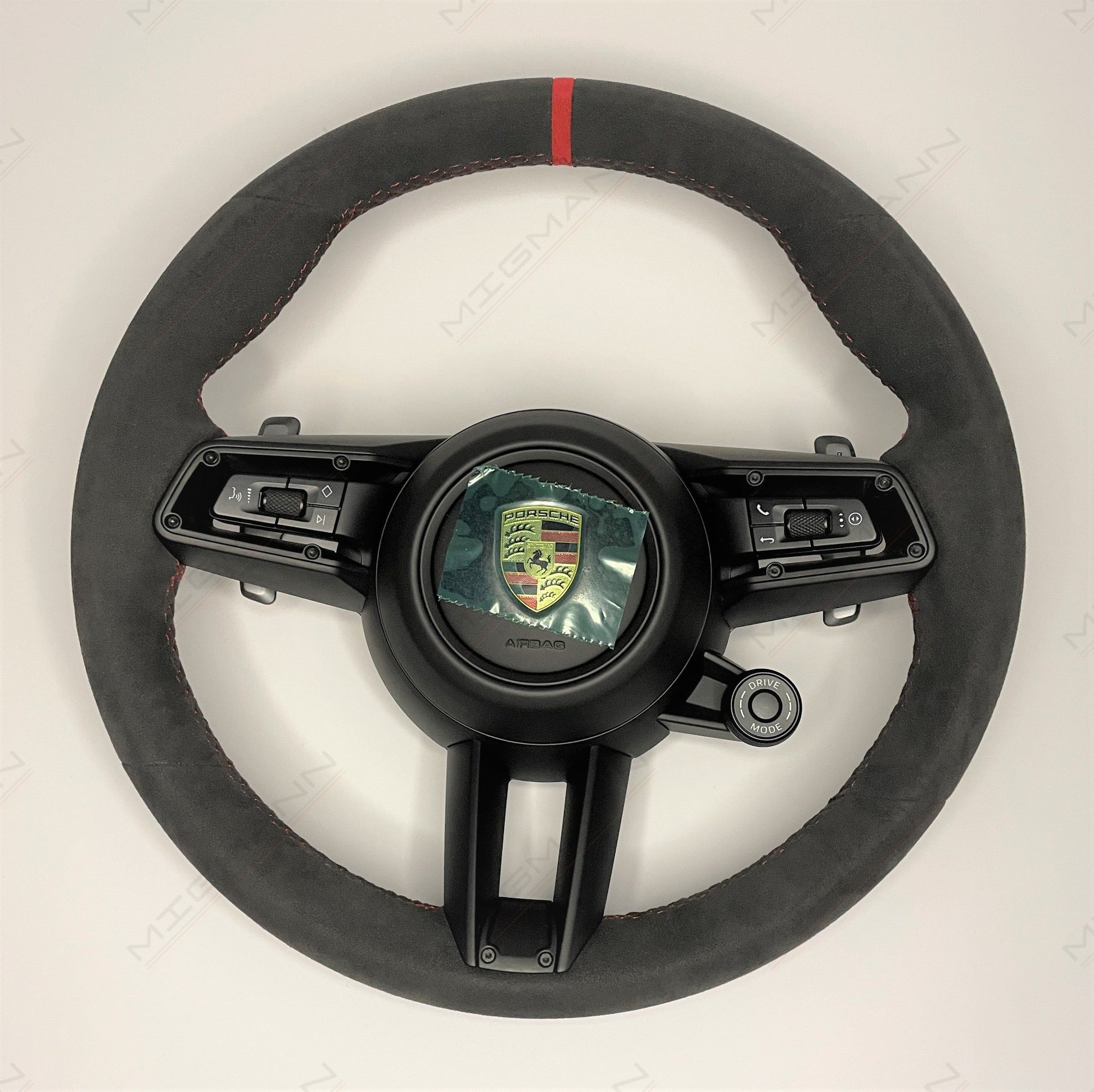 Brand New Porsche Alcantara steering wheel with red stitching.