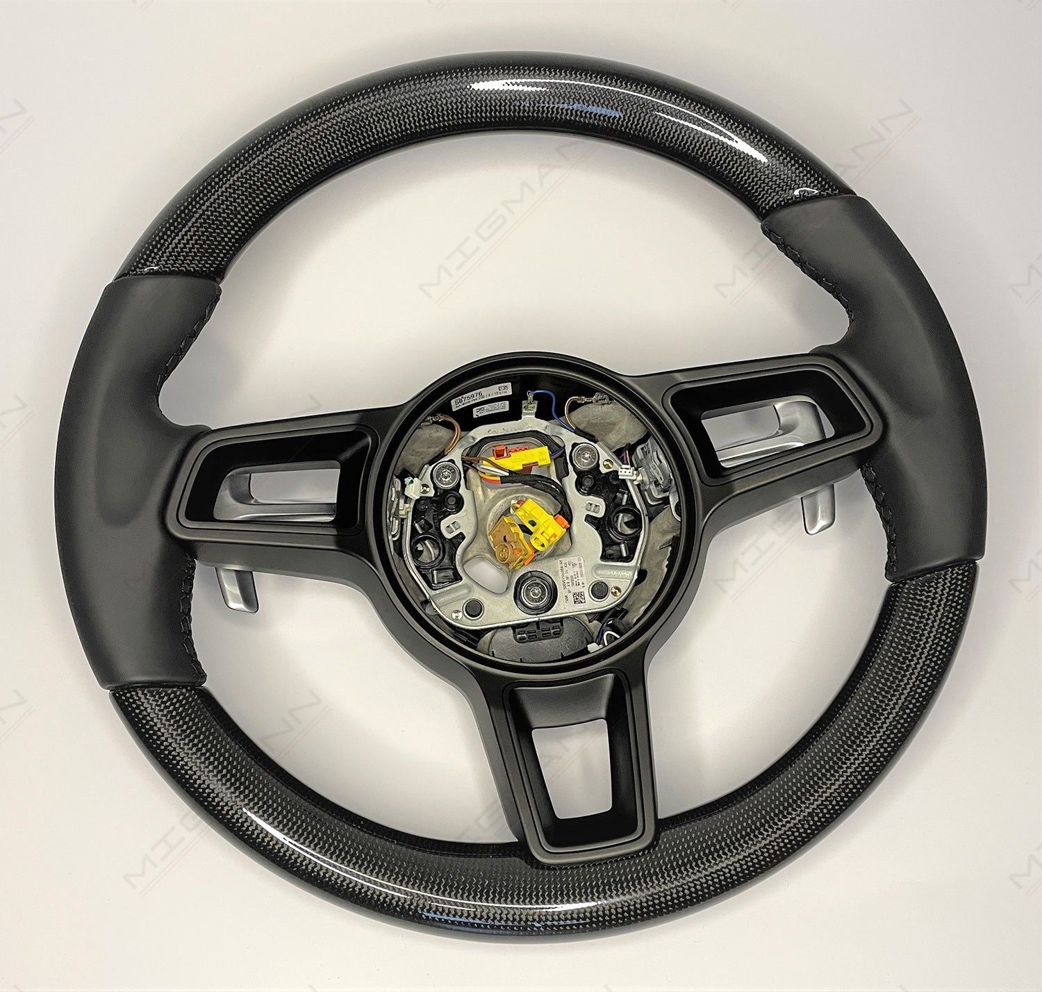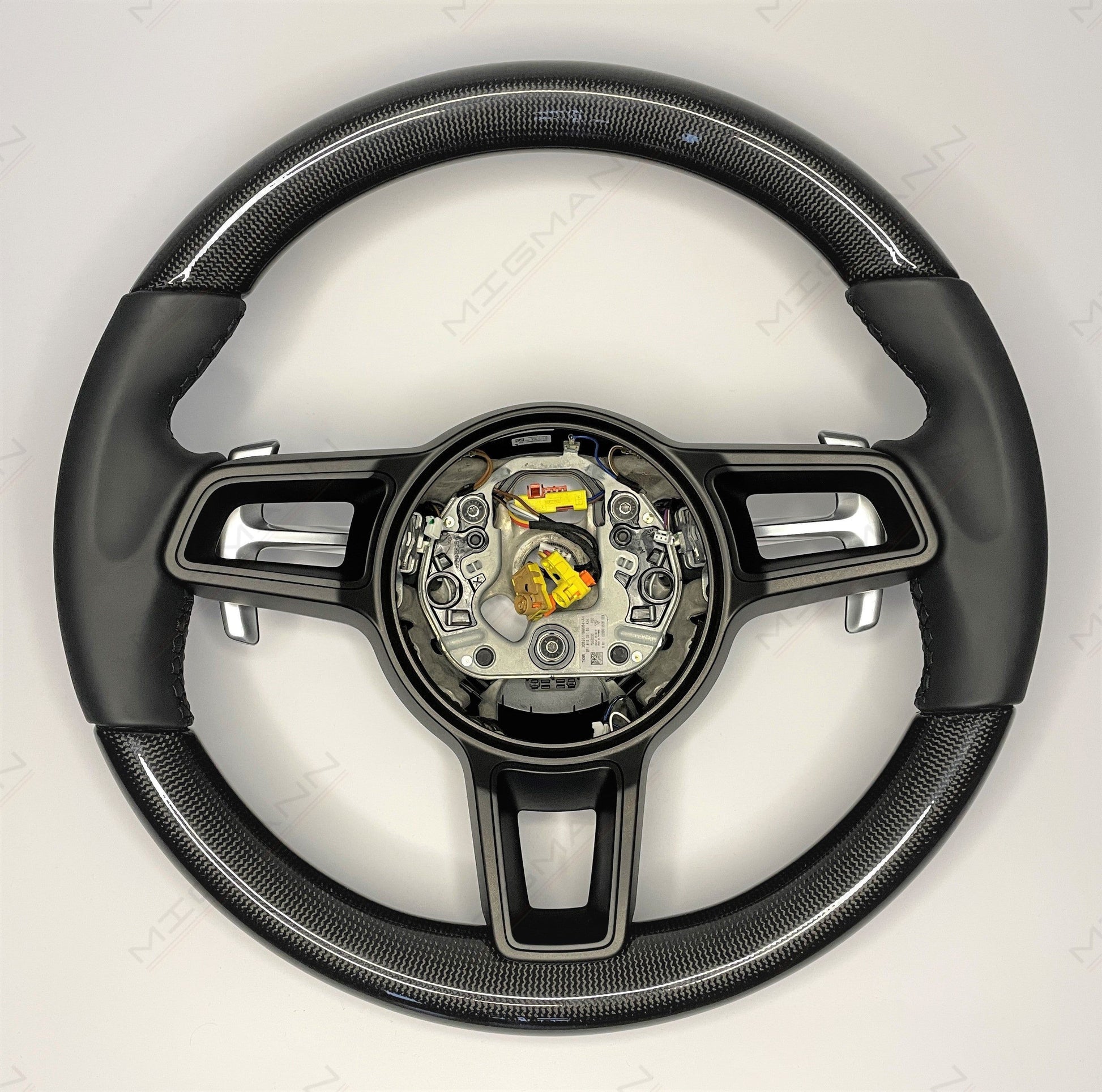 Porsche Carbon Fiber steering wheel with Black Trim in excellent condition.