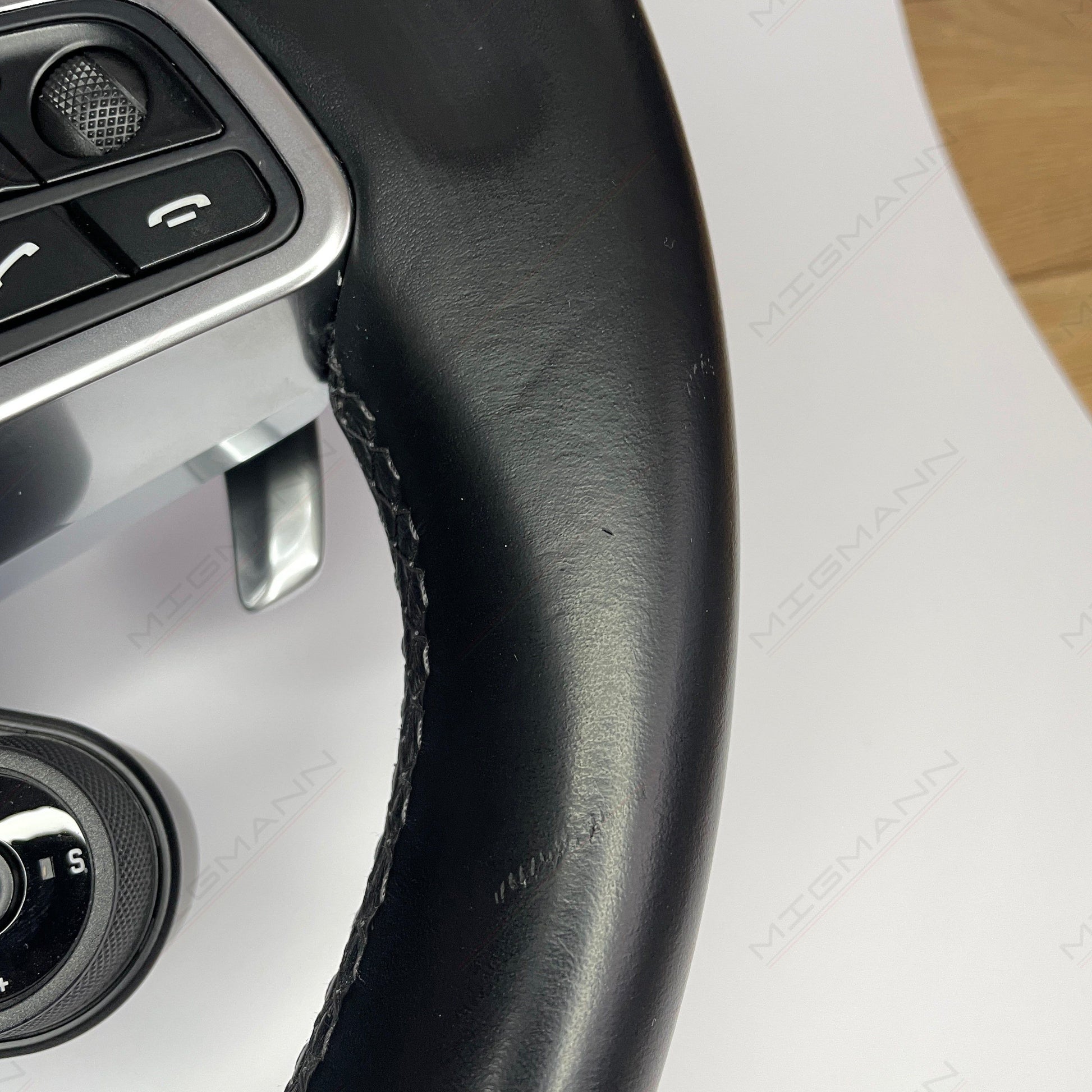 Porsche Black leather with the Chrono controller steering wheel in good condition. All the scratches you could see in the pictures.