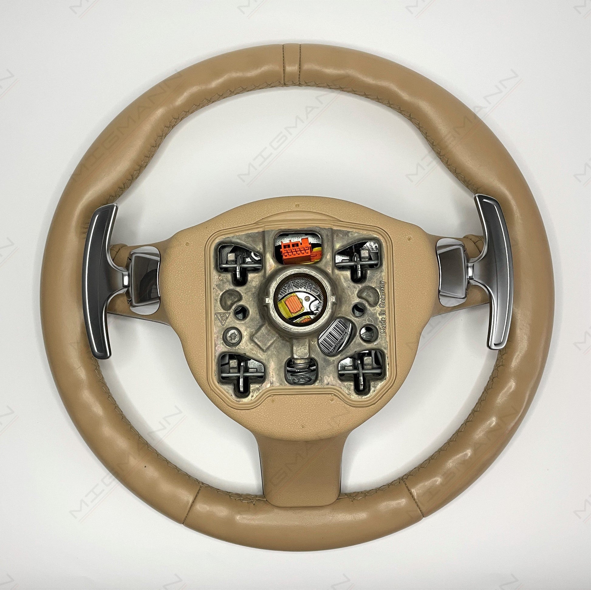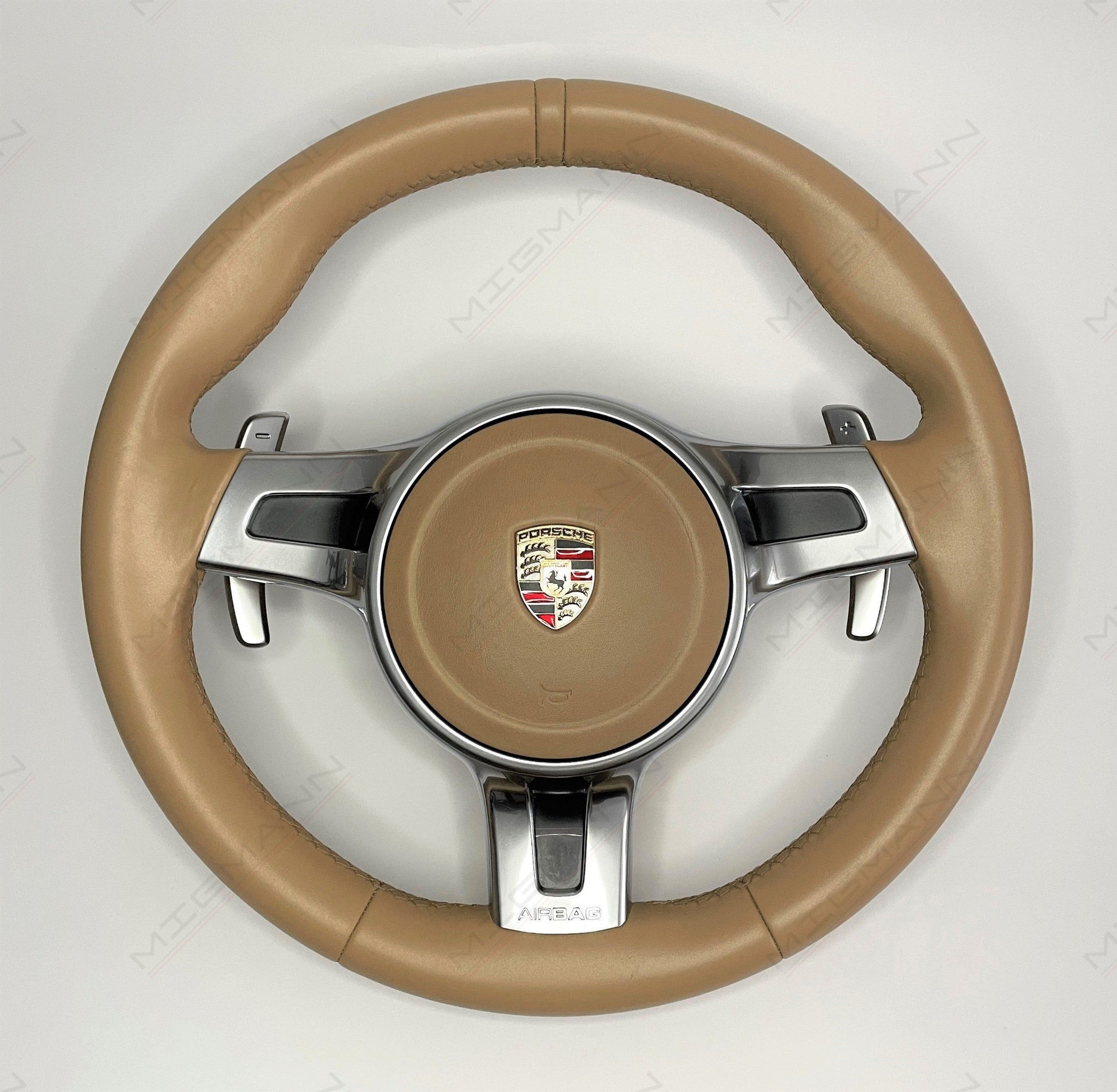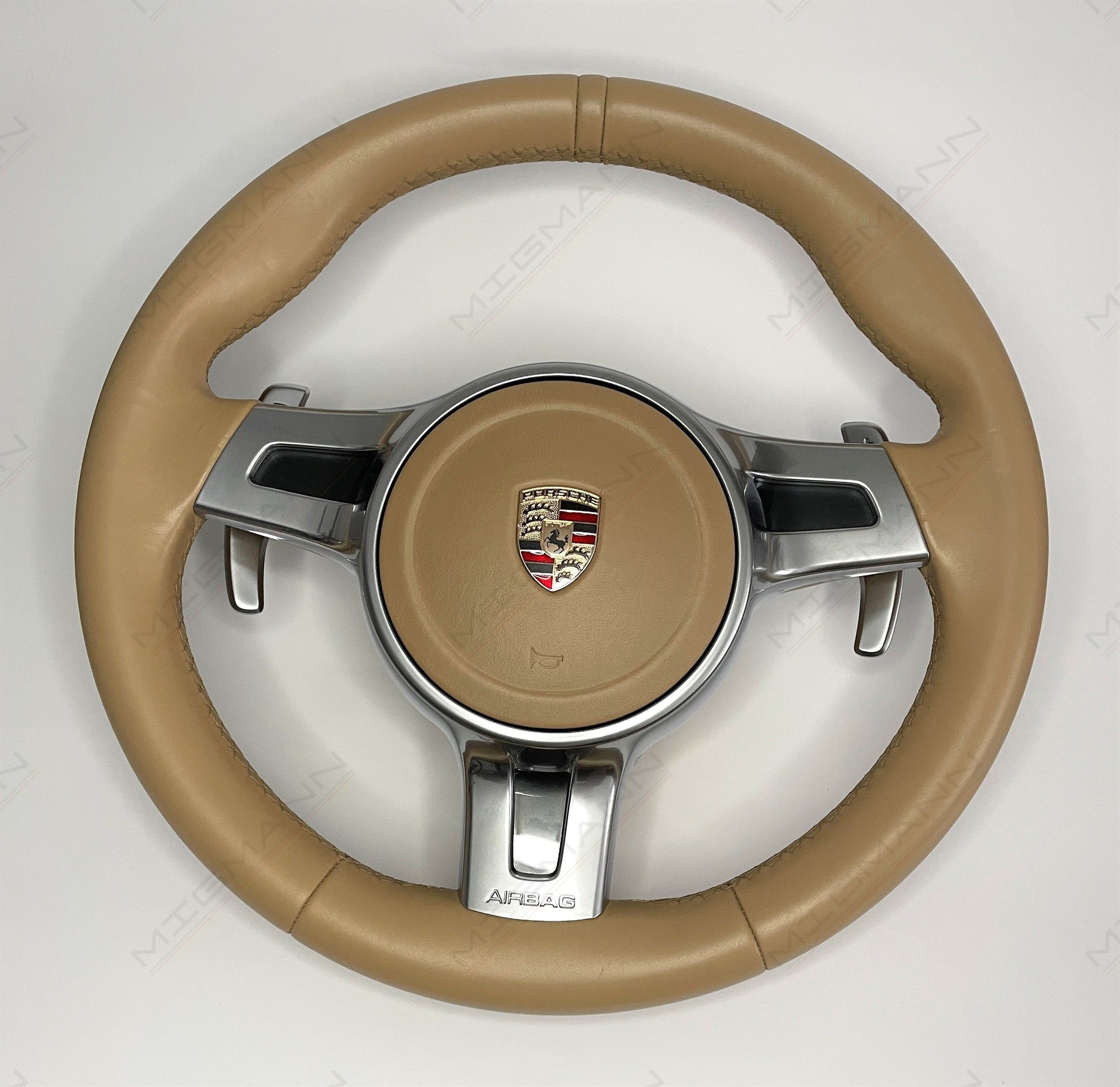 The Porsche Sport Design Luxor Beige steering wheel, in very good condition.