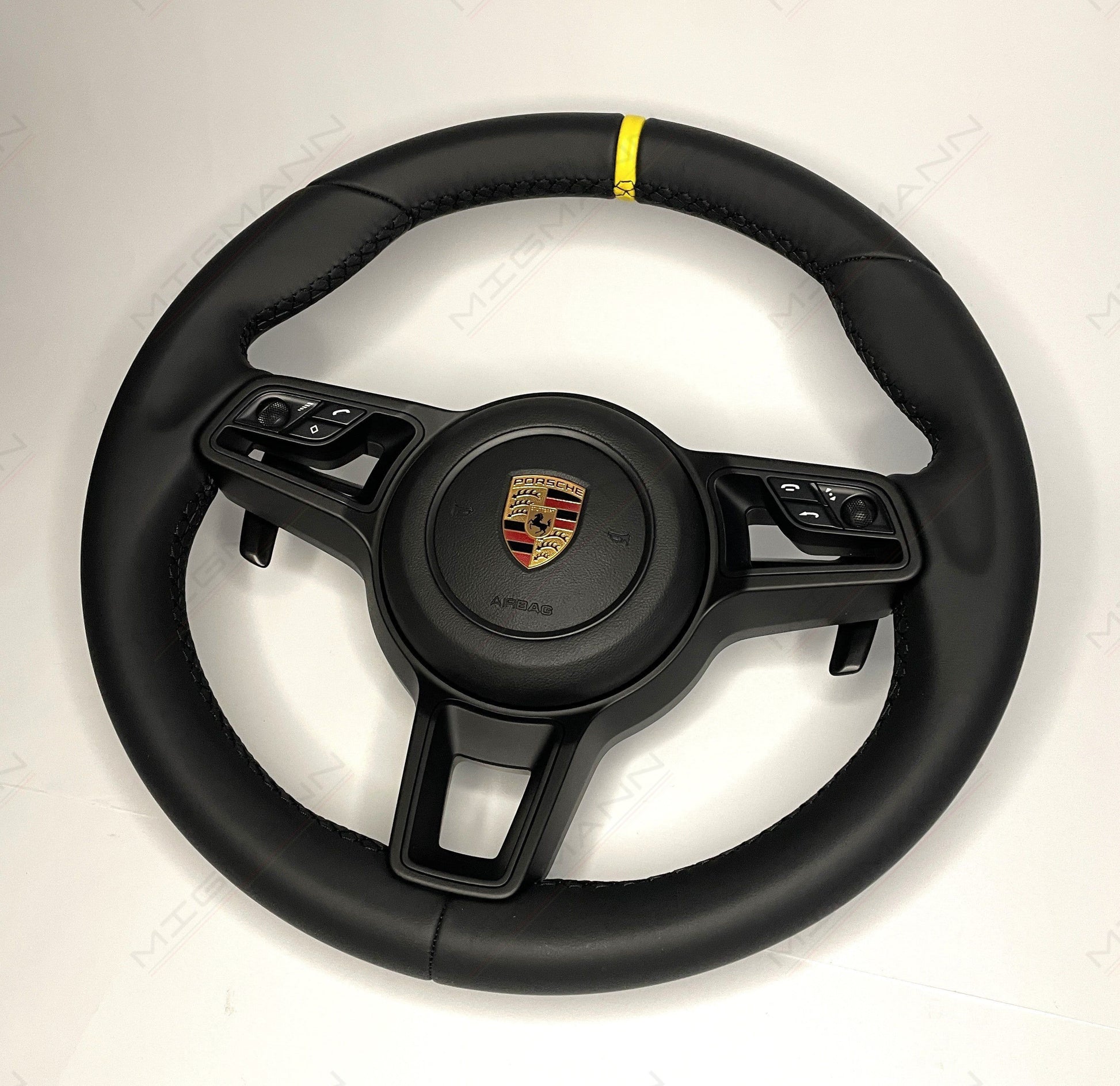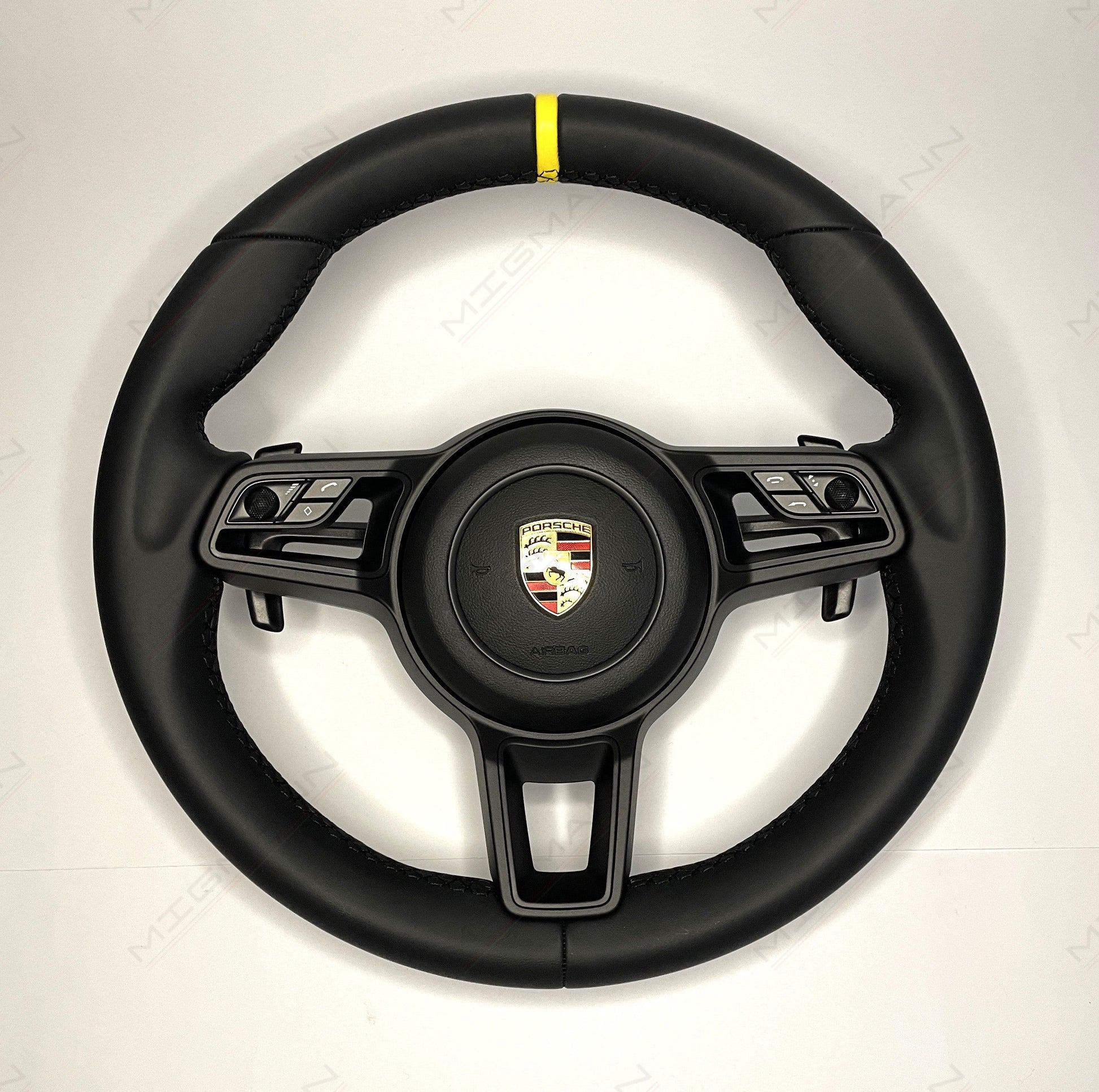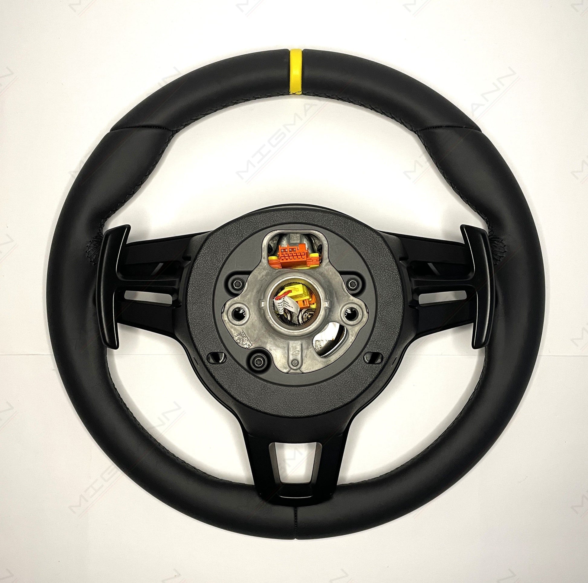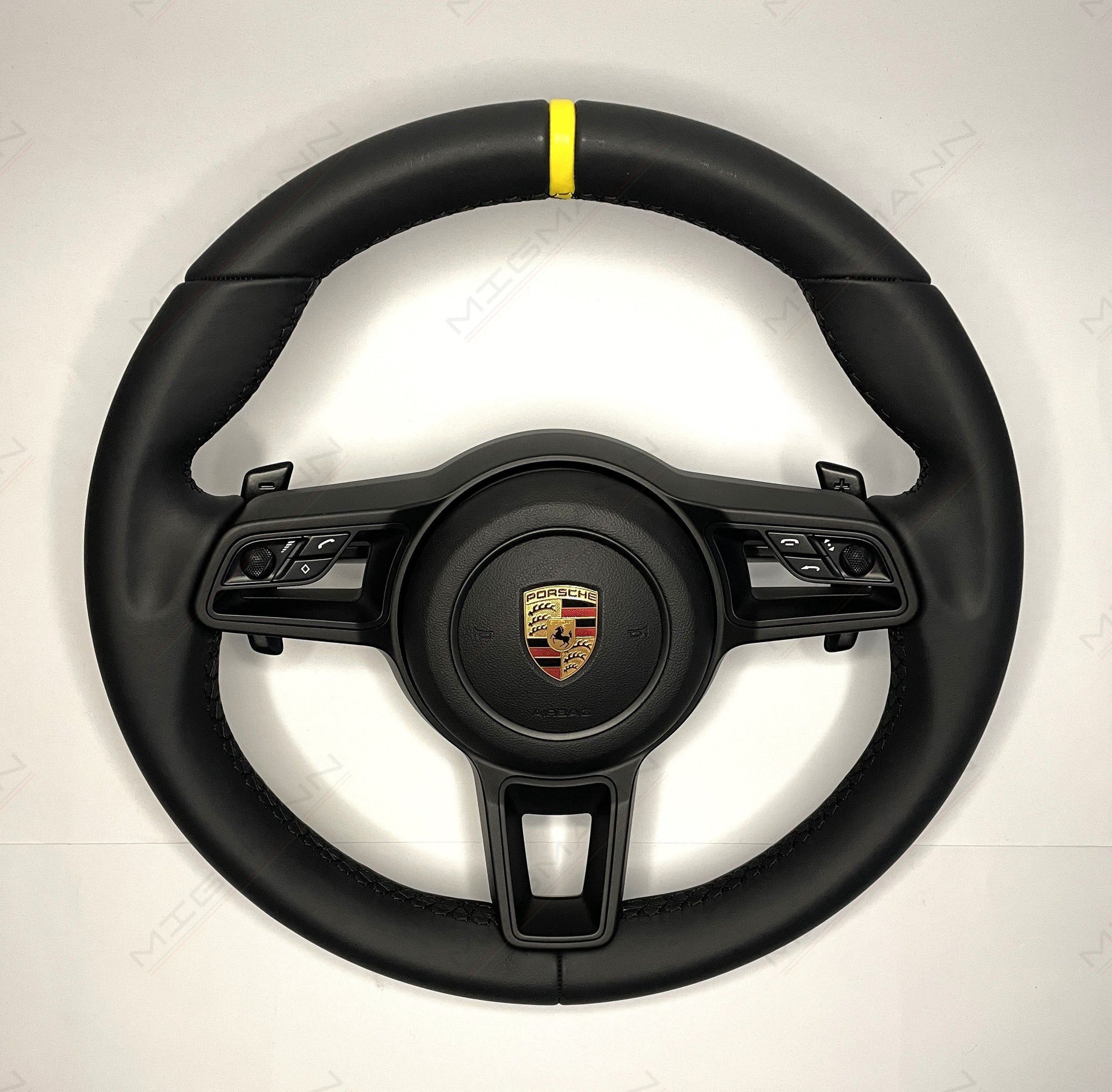 The Porsche 991.2 multifunctional steering wheel with yellow center target and black stitching excellent condition.