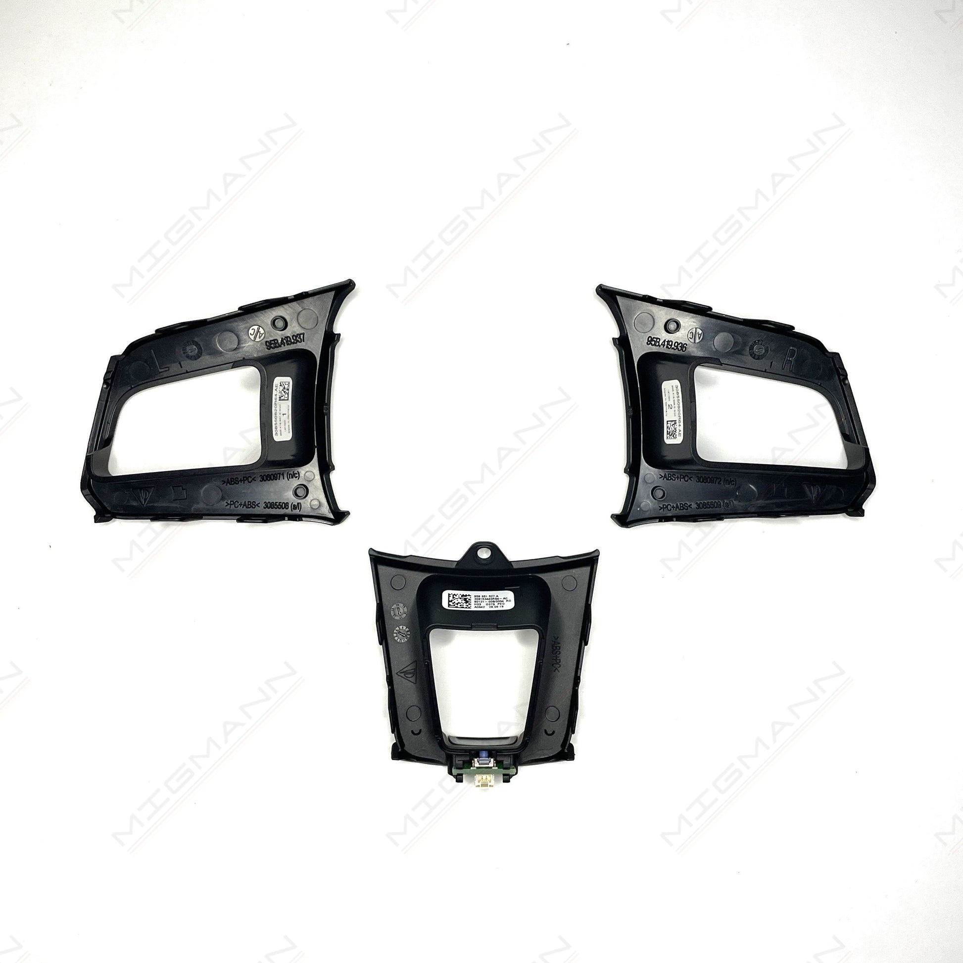 Porsche 92A Cayenne, 95B Macan, 971 Panamera, 911 steering wheel back spokes trim set for heated steering wheels with the button on the lower spoke.