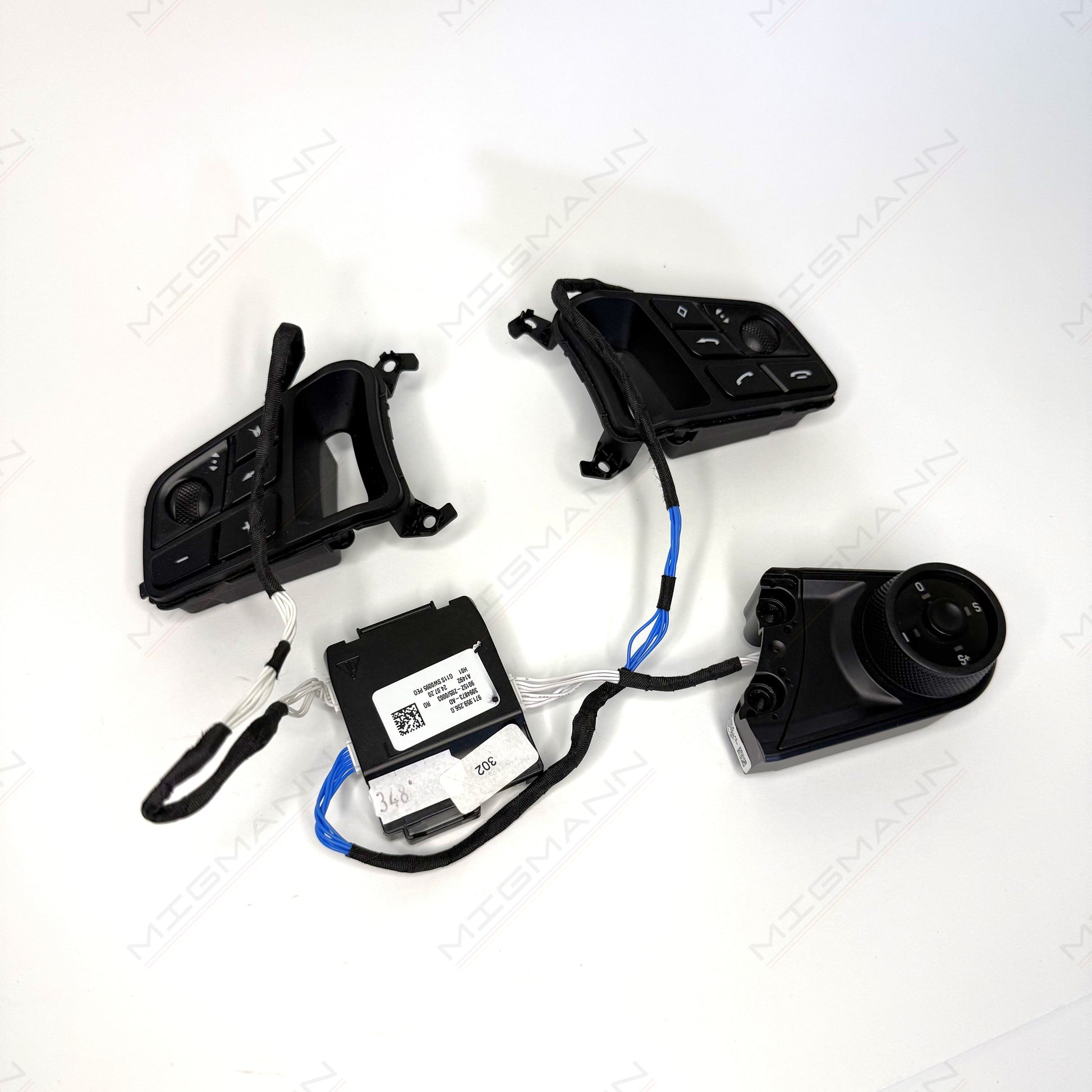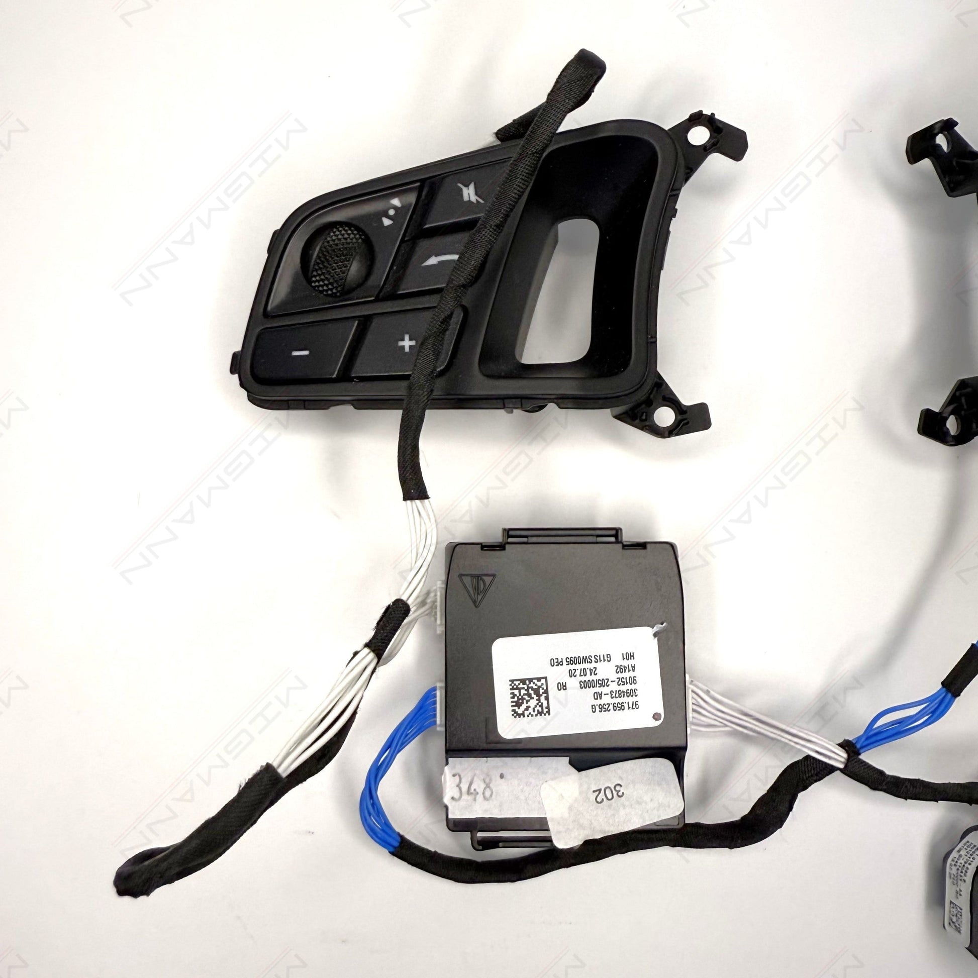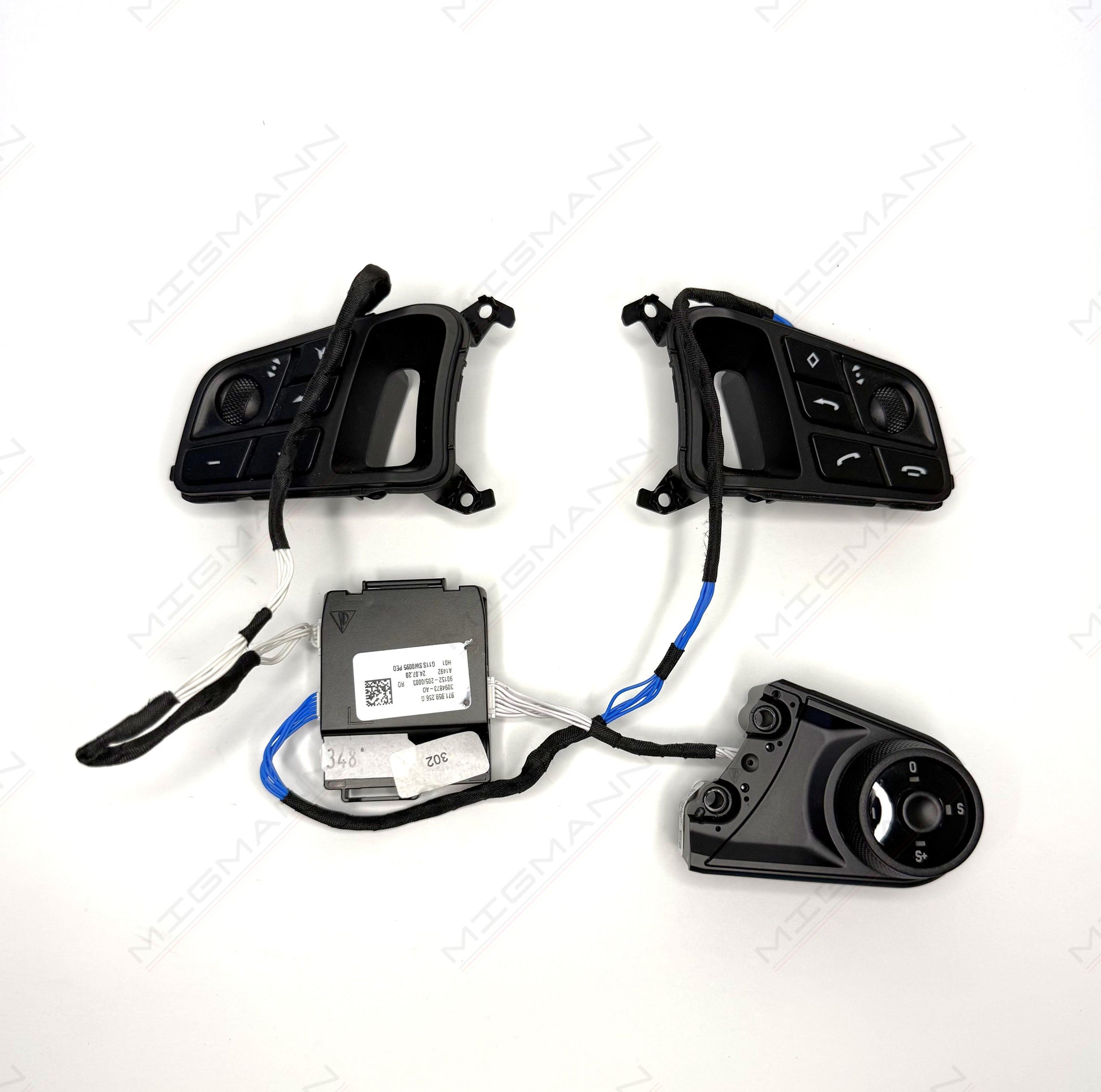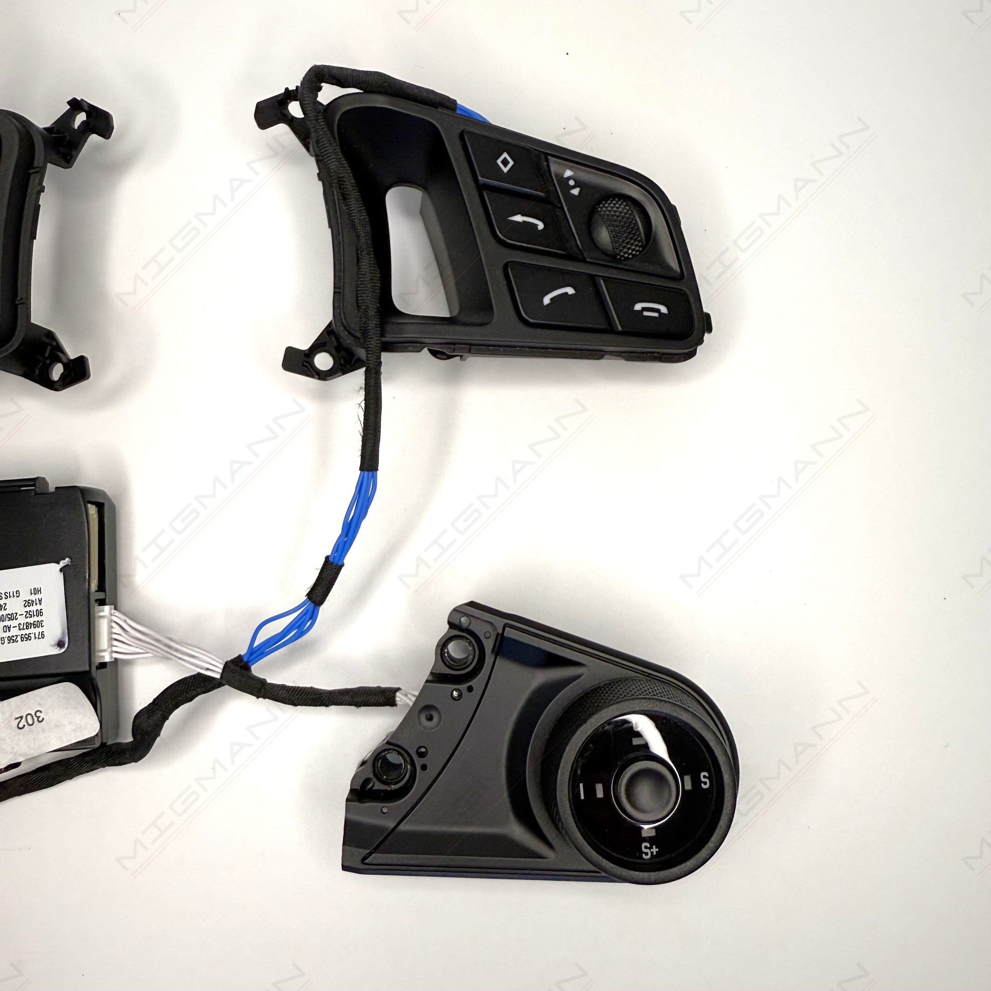Porsche Steering Wheel Multifunction Button Full Set – Includes Buttons, Chrono Controller, Module & Wiring (as shown).