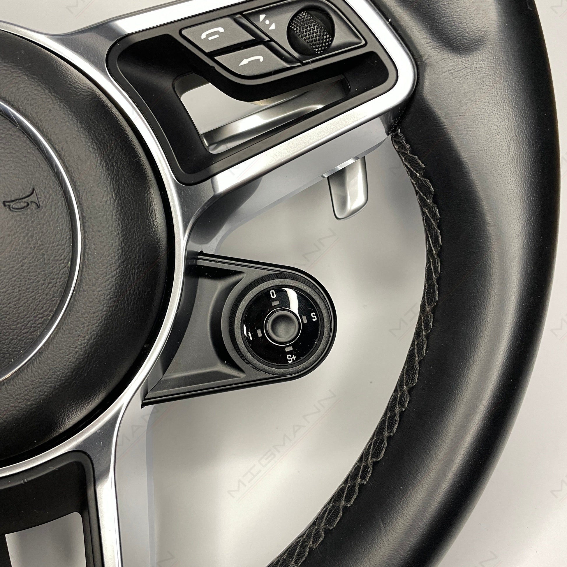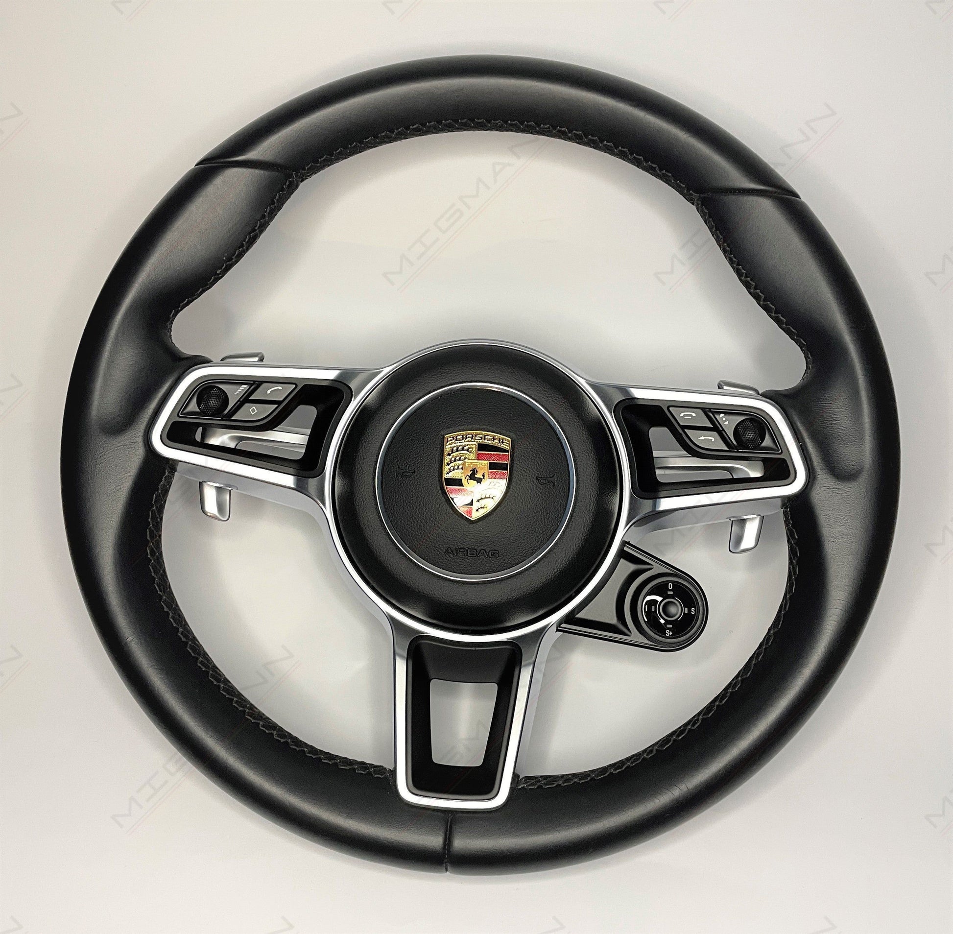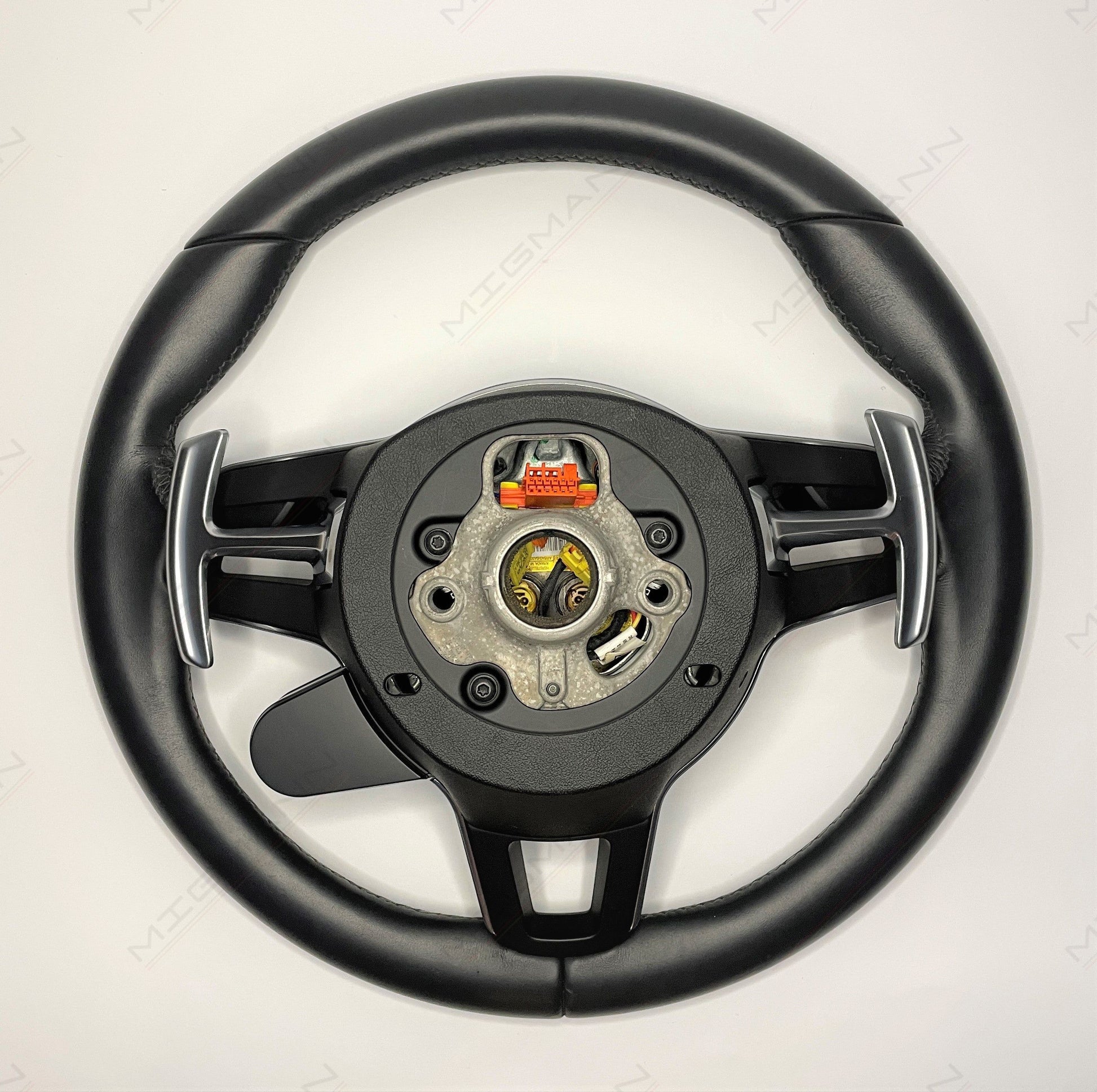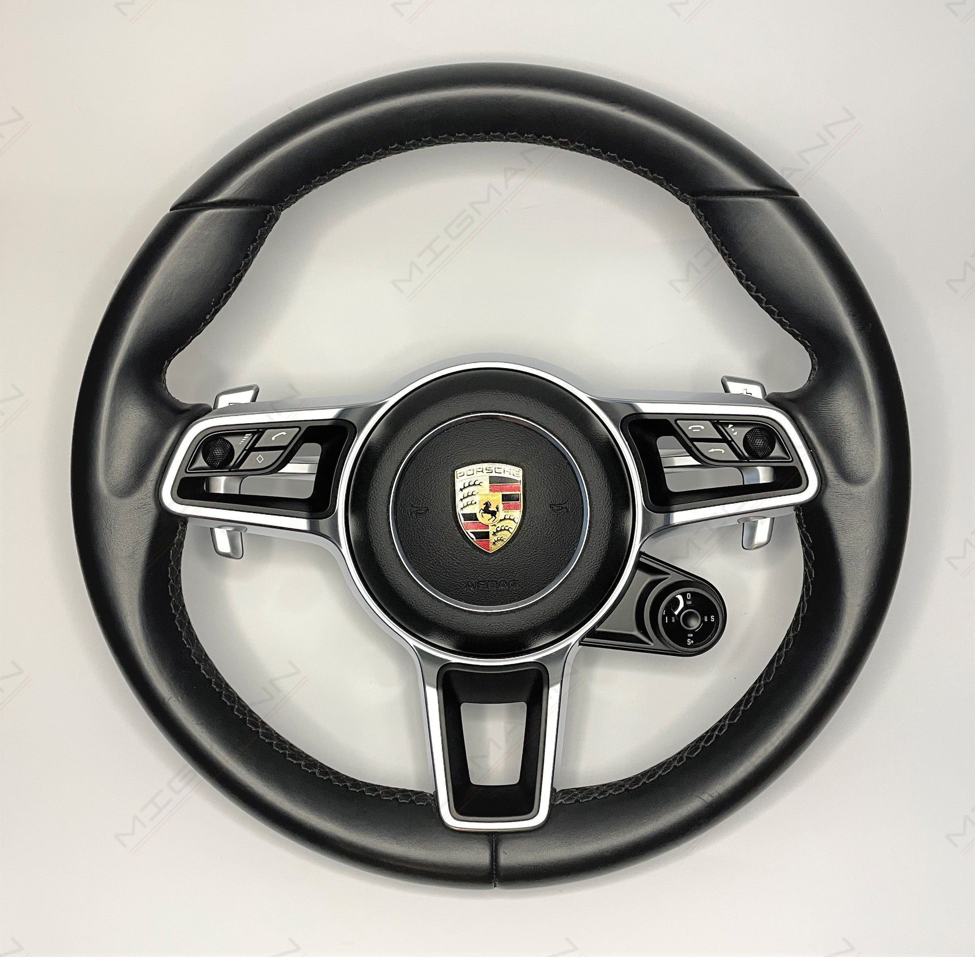 The Porsche steering wheel with Chrono Sport controller in good condition.