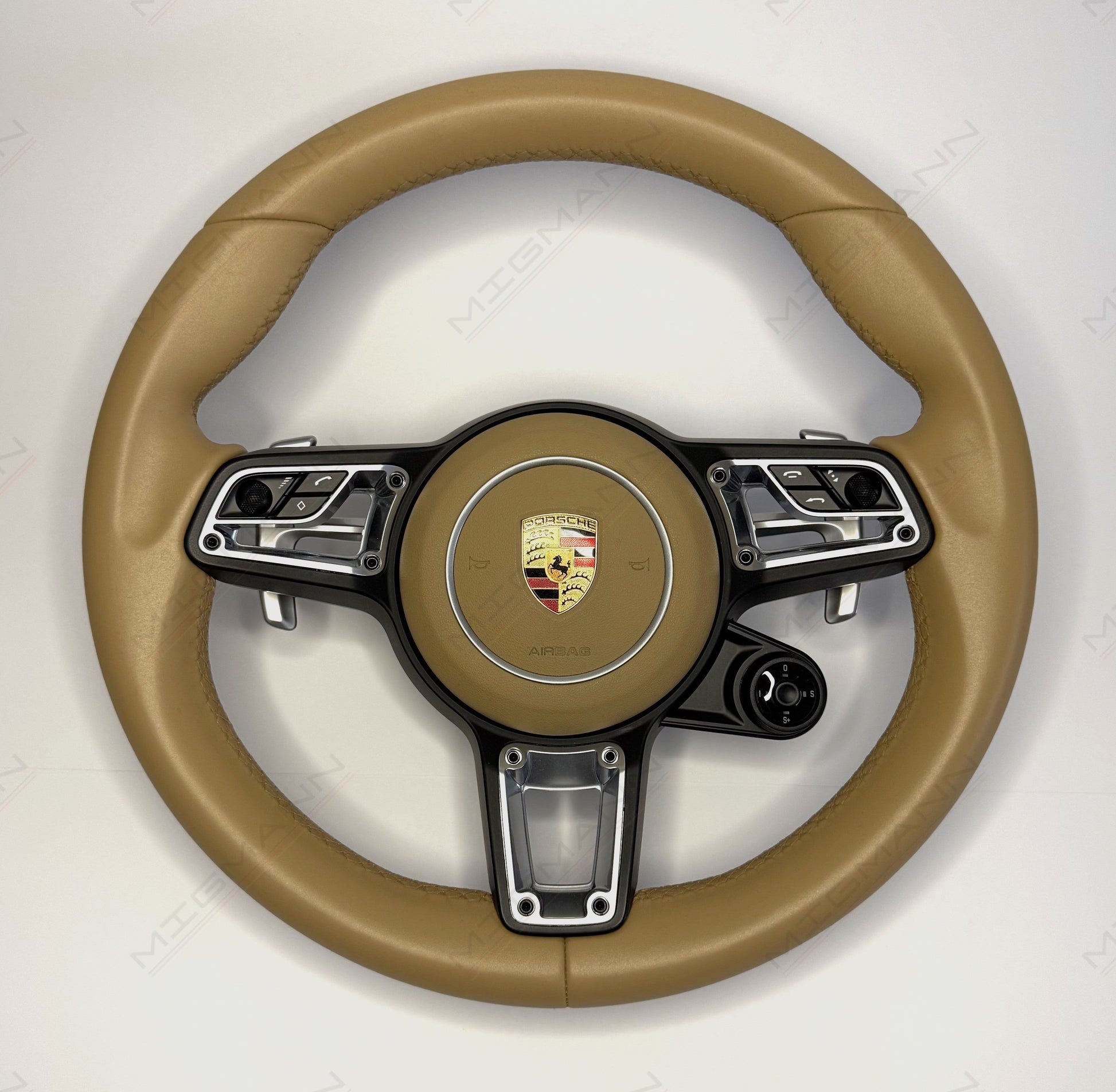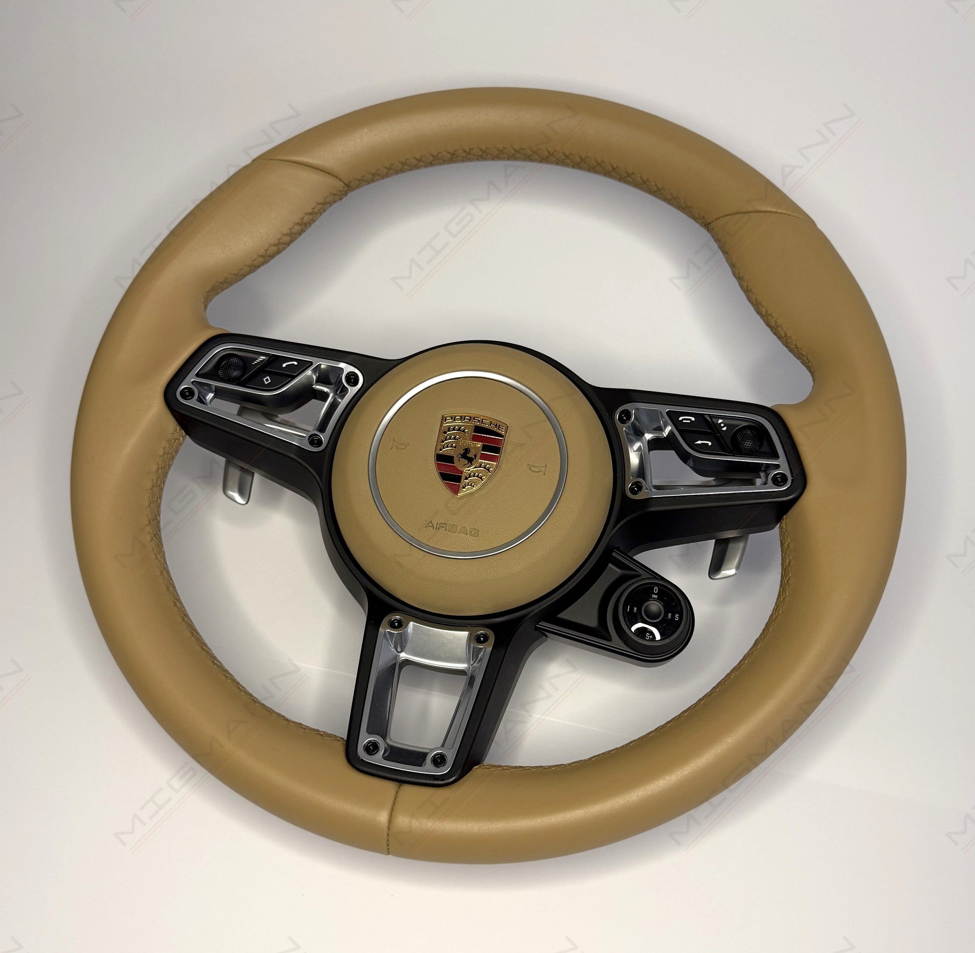 Porsche Luxor Beige steering wheel used in very good condition with Chrono controller.