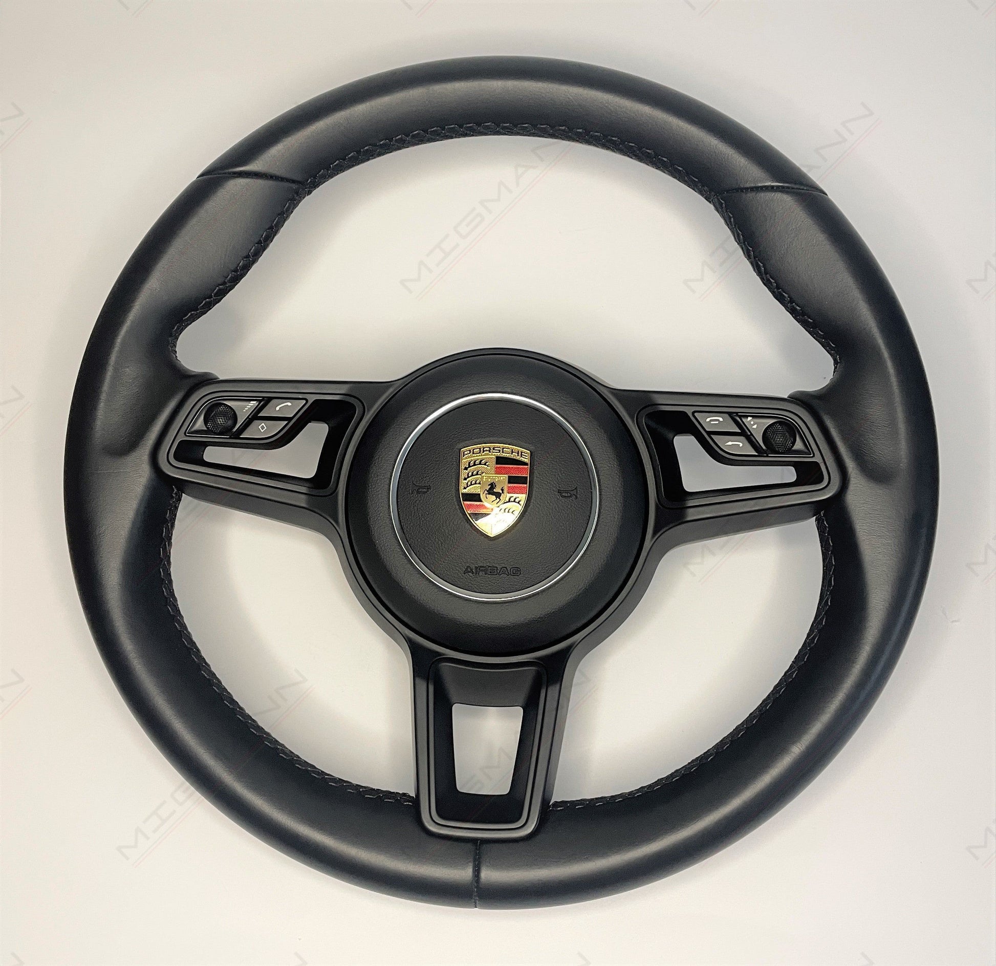 The Porsche Multifunctional steering wheel with black trim for the manual gearbox cars is in good condition.