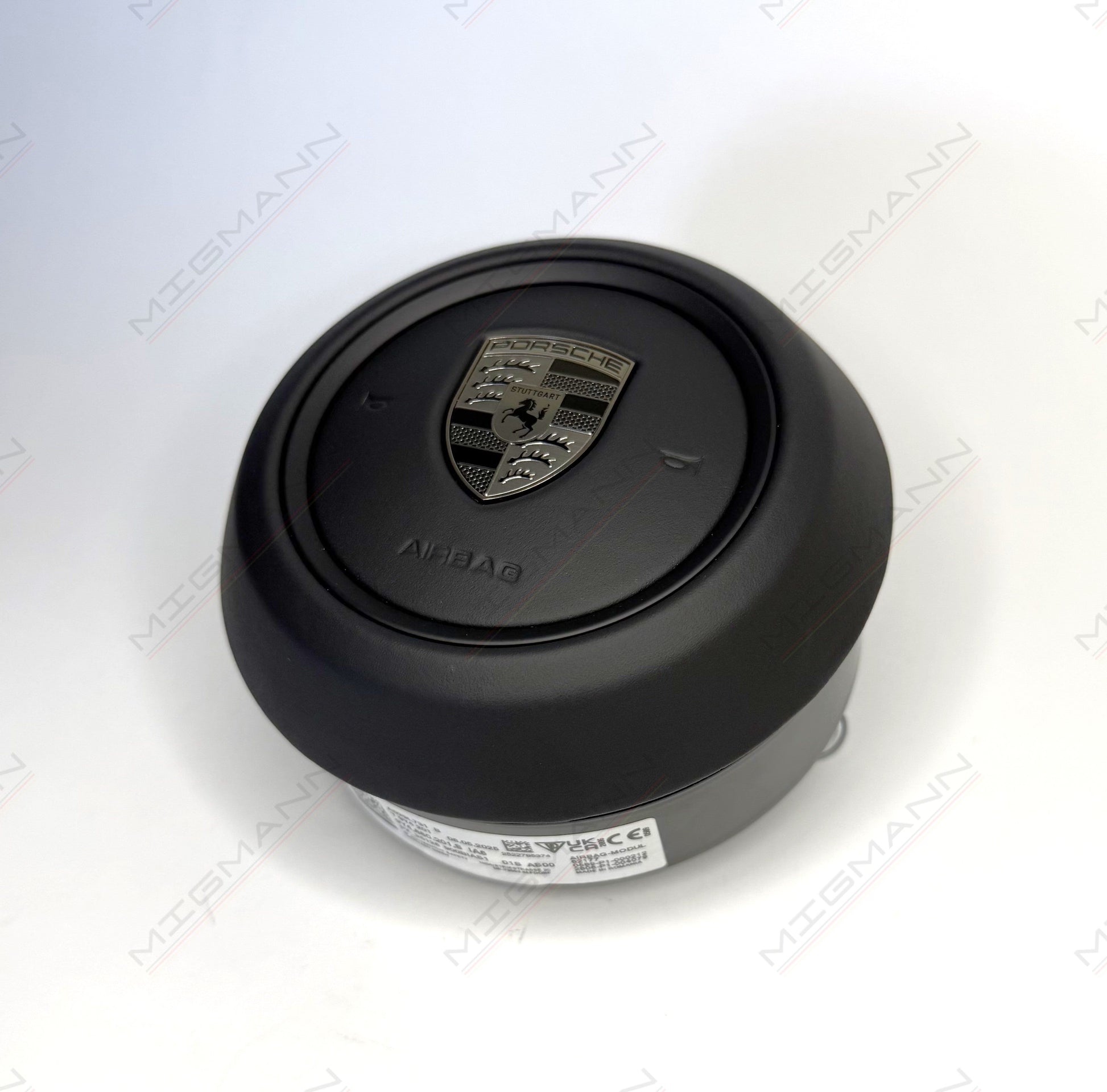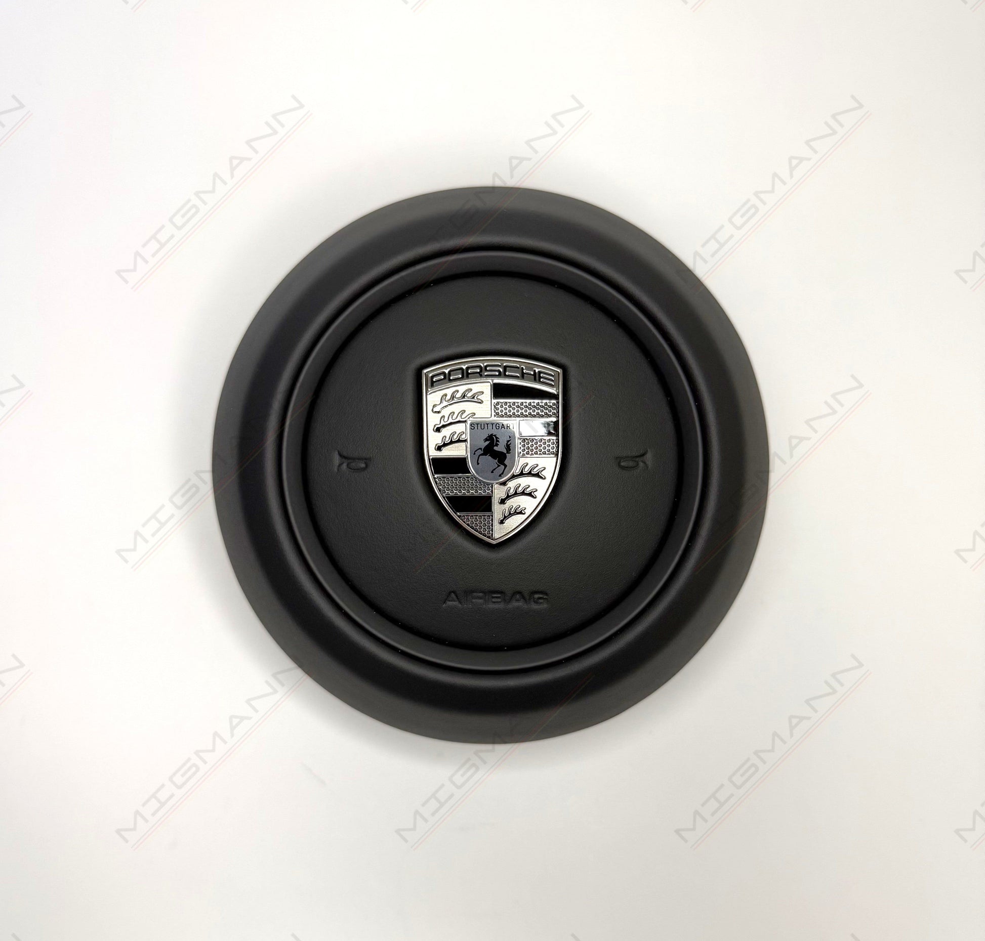 Enhance your Porsche interior with this OEM leather steering wheel airbag, featuring the exclusive Turbonite Porsche crest. Designed for select high-end Porsche models, this airbag adds a refined and modern aesthetic to your sport steering wheel.