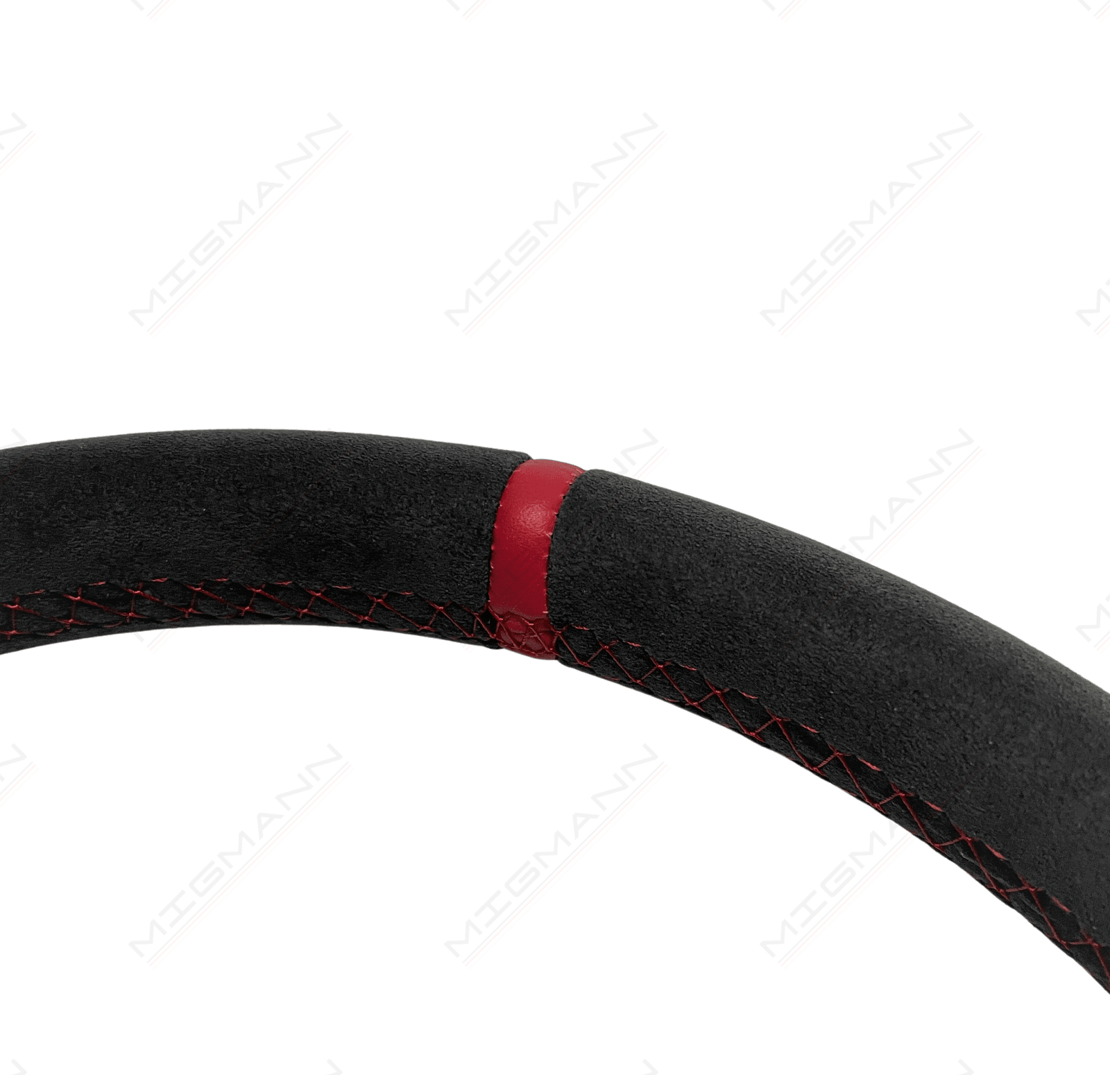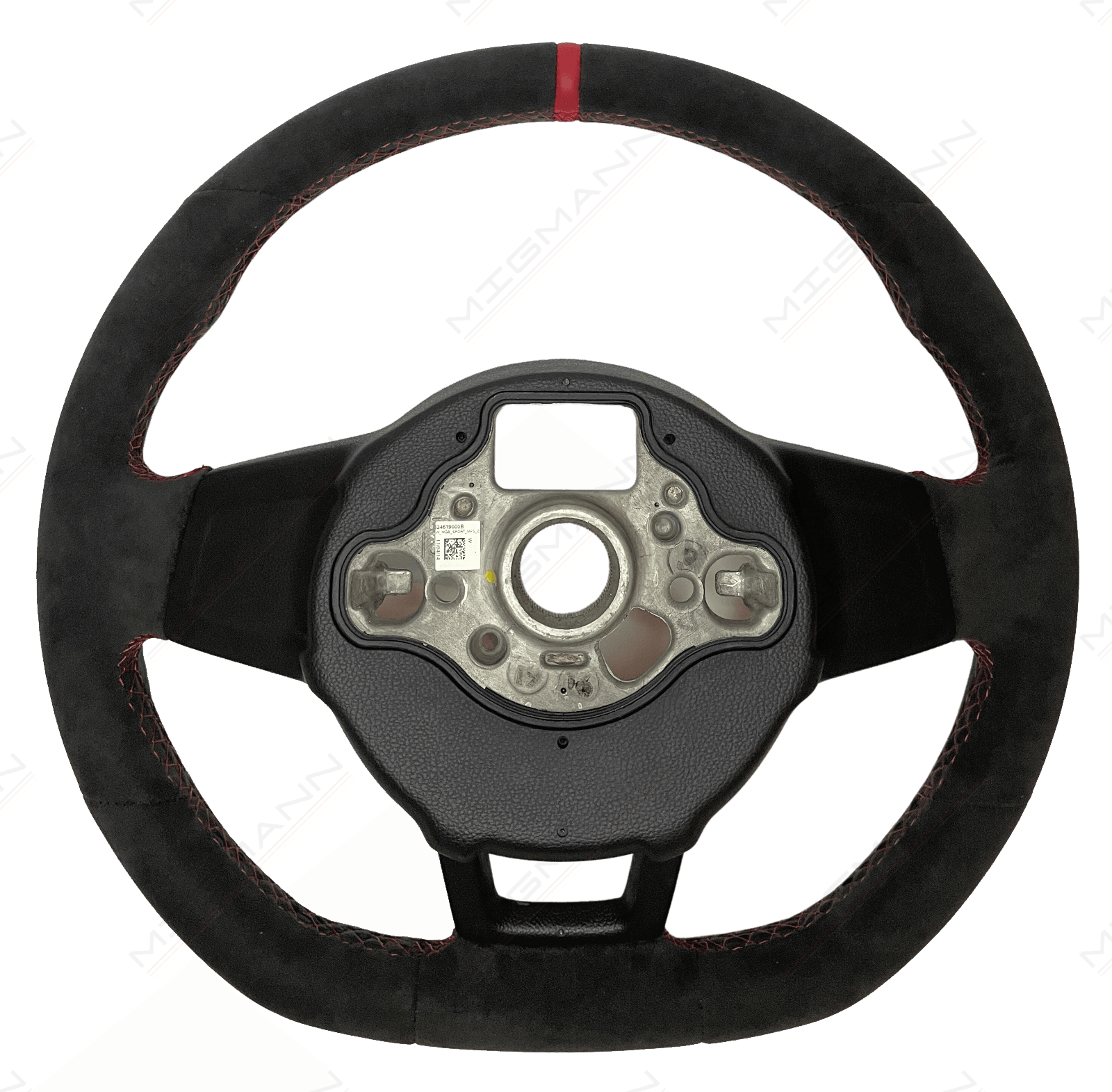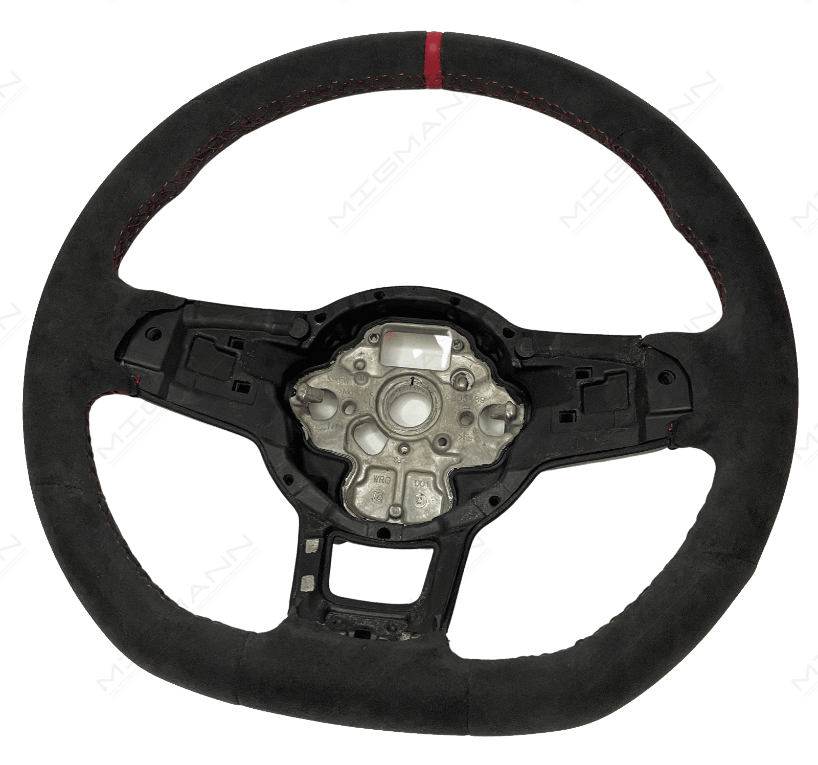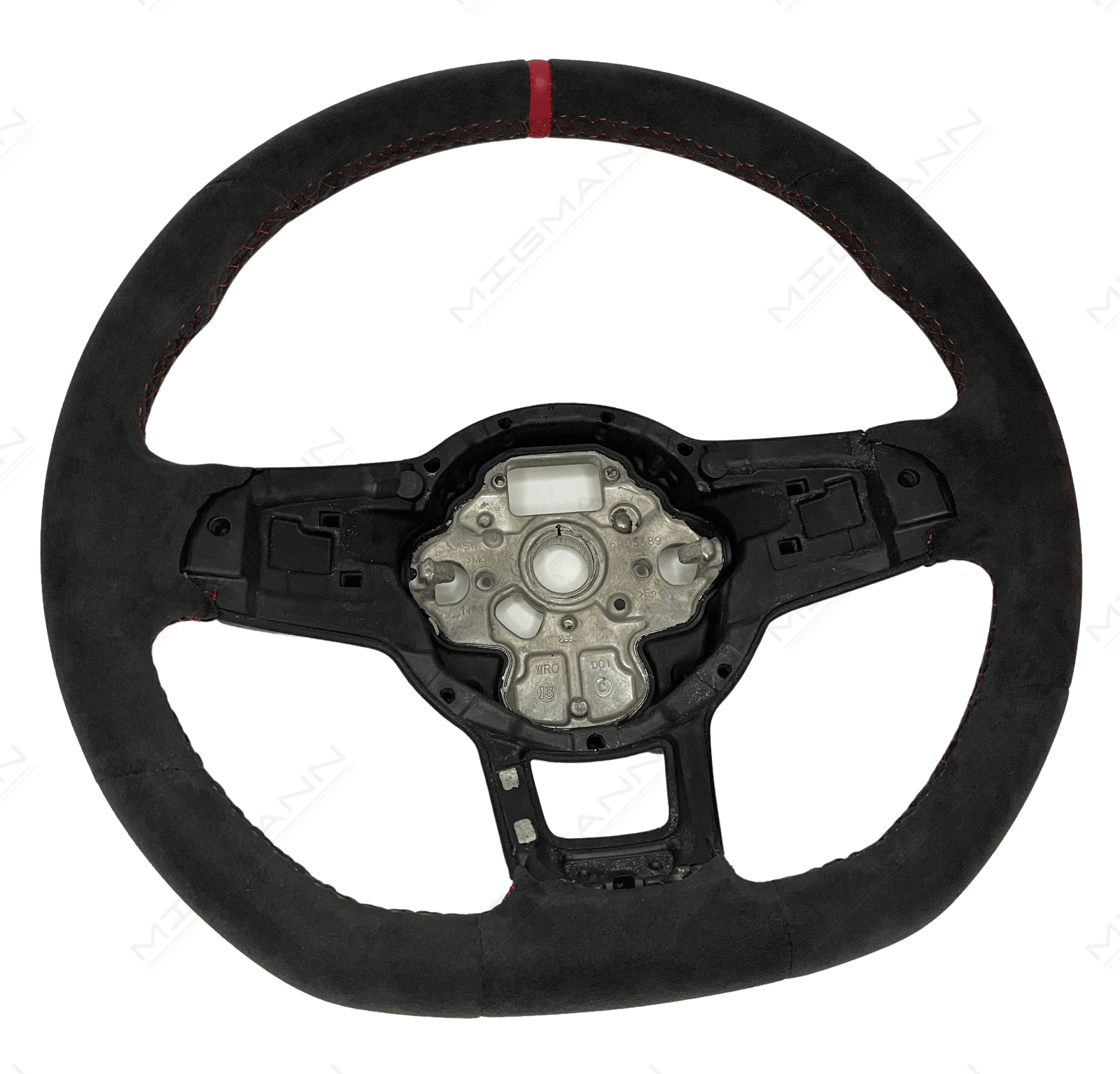 Volkswagen Golf GTI Clubsport Alcantara steering wheel with red stitching.
