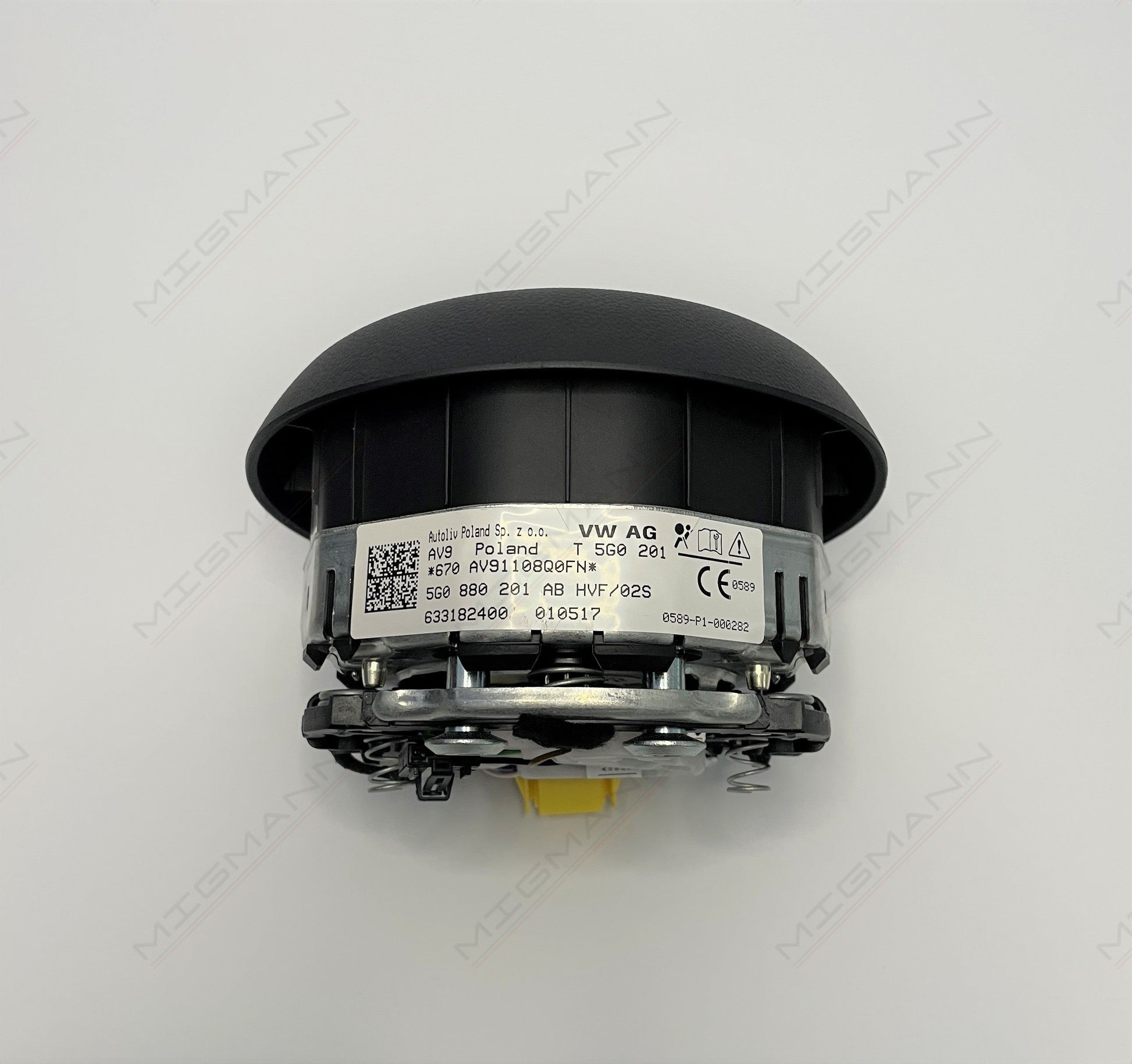 Volkswagen round steering wheel airbag for GTI, R-line, GTD, GTE, or GTL style steering wheels.